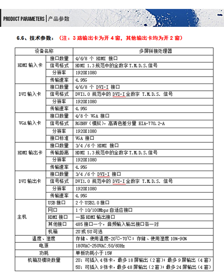 視頻輸入 (選配) | HDMI輸入板 (HD-IC04、HD-IC02) | 支持4/2通道HDMI信號輸入,HDMI Tpye A接口,支持HDCP,最大支持分辨率1920*1080@60Hz; |